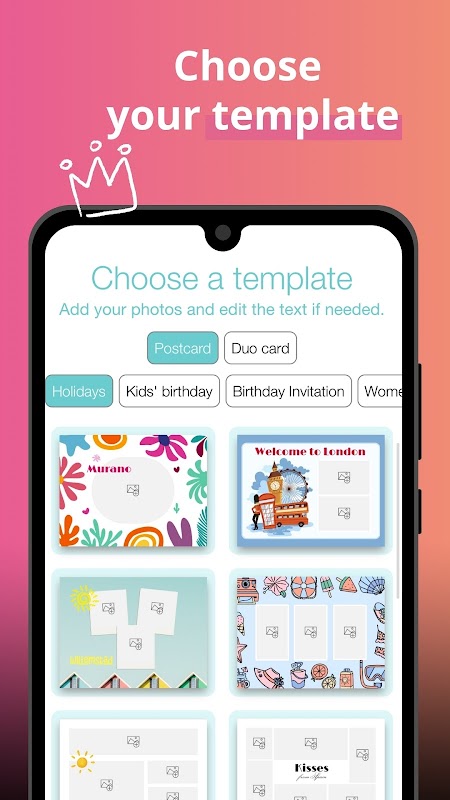 - enjoy a wide choice of themes: birth, wedding, birthday, love, travel, invitation, thank you, condolences...