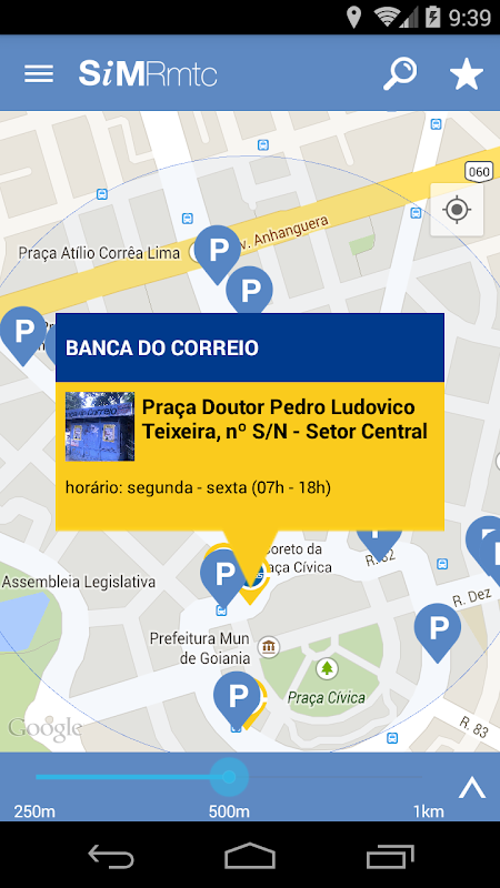 The SiMRmtc application is an excellent urban mobility tool, through which you can follow the movement of vehicles in the Metropolitan Region of Goiânia in real time. The cell phone's GPS recognizes your location and shows you nearby bus stops and Sitpass card recharge sales locations.