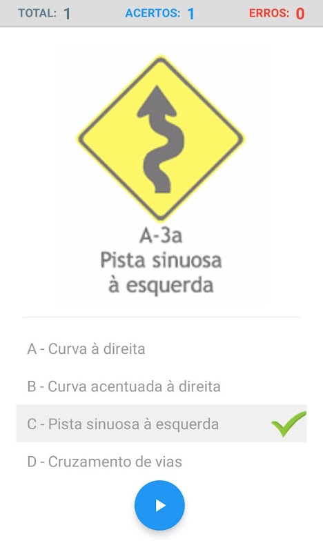 In addition to the simulated APP, also has the section of traffic signs, with Quiz and theoretical information on traffic signs.