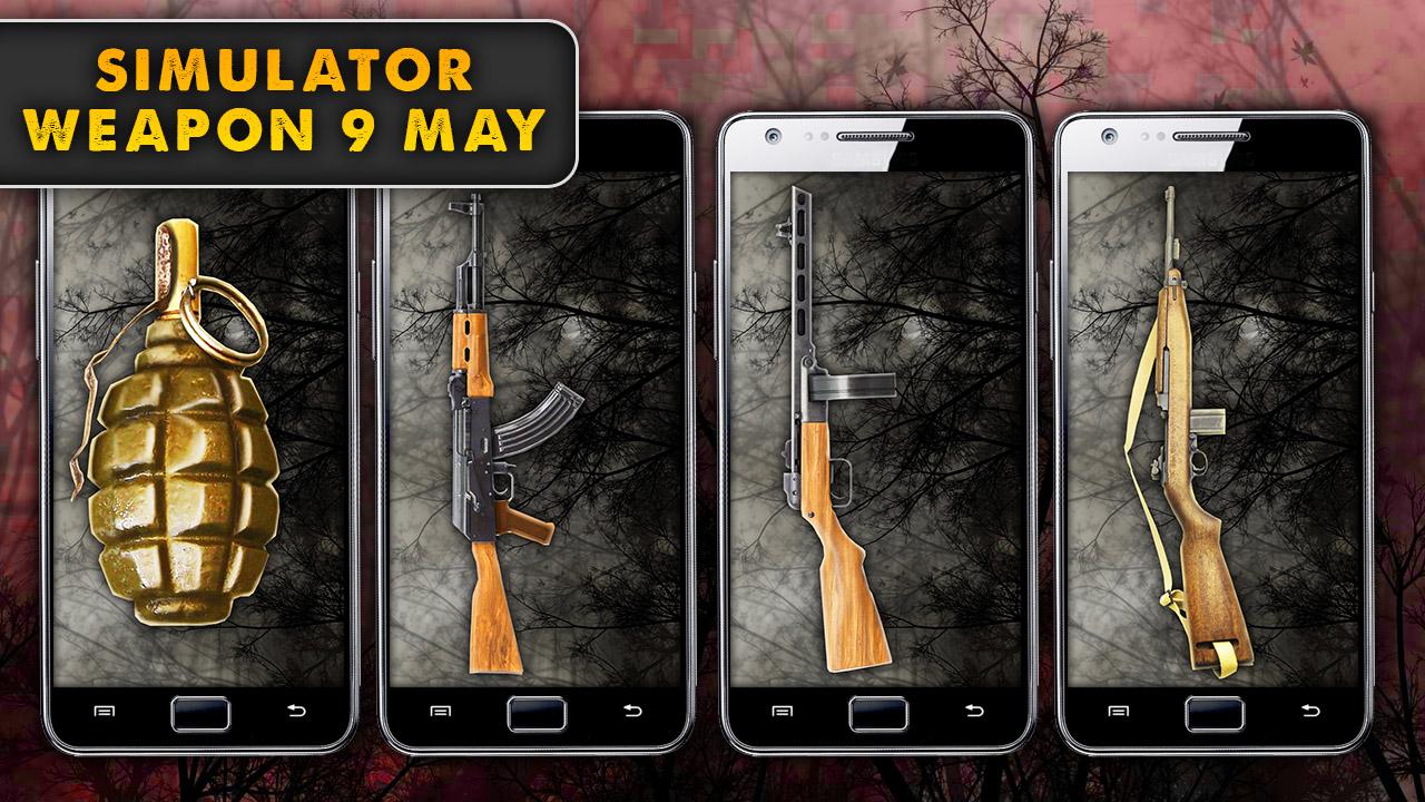 Simulator Weapon May 9 - a game application where you can shoot a gun the day of victory , which participated in the Great War . Russia , Germany and other countries have used them . All fun and enjoy the sounds of gunfire and explosions . Simple operation is enough to choose from an arsenal of gun and pull the trigger to fire or explosion. The annex has weapons like AK , rifle, pistol , grenades and more. Play with friends in the war as a joke with our application , choose the role , show imagination!