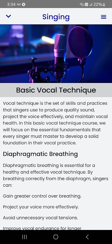 You'll learn the fundamentals of vocal technique from scratch, with step-by-step lessons that will help you improve your breathing, body posture, and vocal control. With practical exercises designed to strengthen your voice and expand your vocal range, you will become a more confident and versatile singer.