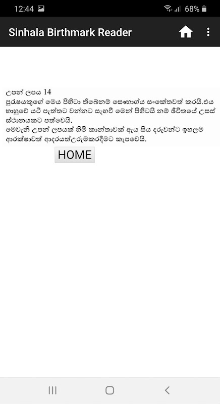 ඔබගේ ශරීරයේ ඇති උපන් ලකුණු අනුව ඔබ ගැන සිංහලෙන් දැන ගත හැකි ඇප් එකකි.