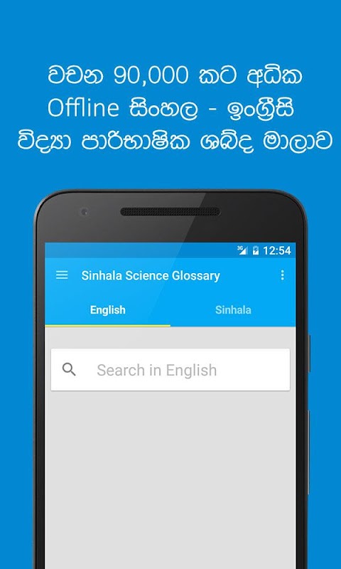 In this Sinhala – English Science Glossary mobile app, more than 90,000 words which cover all science disciplines such as Agriculture, Botany, Education, IT, Mathematics, Physics, Statistics, Chemistry, Geography, Library science,Geo Science, Computer Science, Molecular biology, Nursing and Zoology.