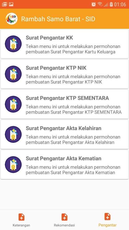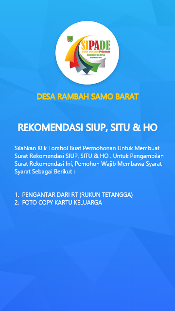 SID Rambah Samo Barat is an application developed with the aim of facilitating population administration services within the Government of Rambah Samo Barat Village.