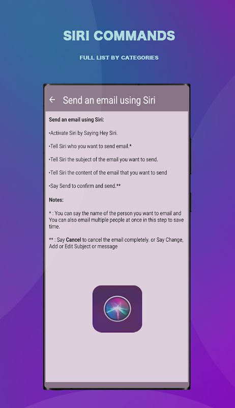- This is an informational application that contains all known voice commands for Siri assistant app.