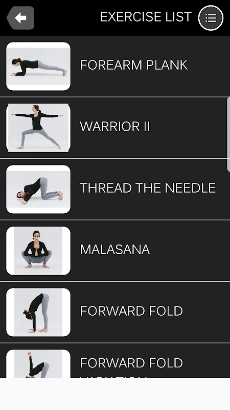 * Perform yoga with countdown timers and prompting sound for each exercise and breaks