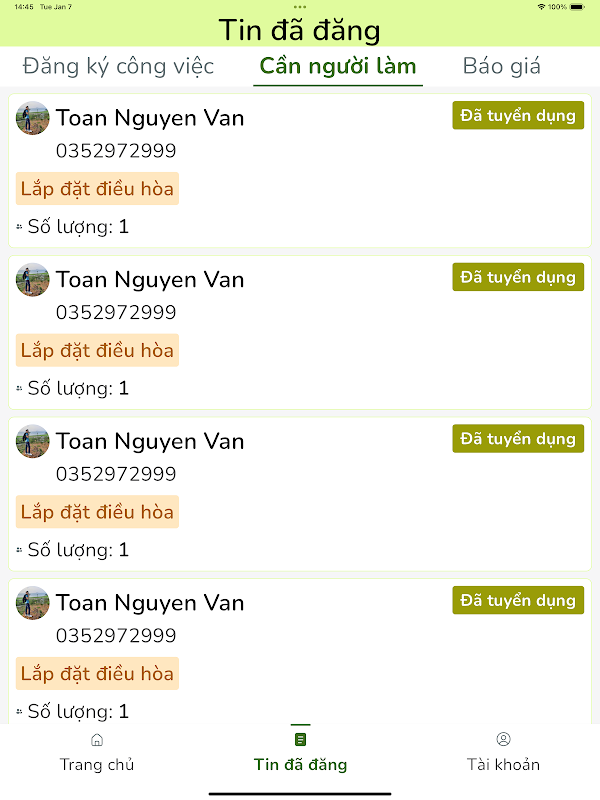 • You are wondering if you can't find someone to handle your job or need many people to survey and quote for a certain item, you just need to post a job need job or quote, the system will connect workers to you. Friend .