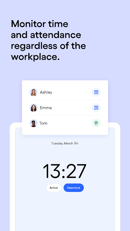 • Simple to install, easy to use. It only takes a few seconds to install the app on your tablet, customise the settings, and get familiar with the time clock.