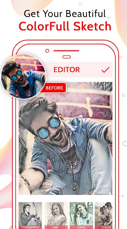 You can set different effect on your image which provided by Pencil Sketch Photo, Photo Editor, Sketch Photo App Auto Pencil Sketch Maker provided animated sketch to be feel originally making sketch. Many amazing effects like oil sketch, water sketch, gouache effect, colour pencil, cartoon effects are inbuilt inPencil Sketch Photo, Photo Editor, Sketch Photo App.