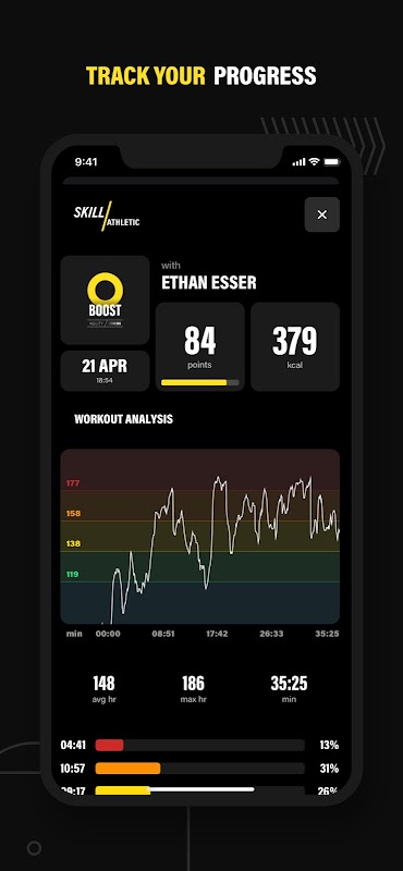 With the SKILLATHETIC App you will start an immersive and complete training experience, from class booking to results tracking.