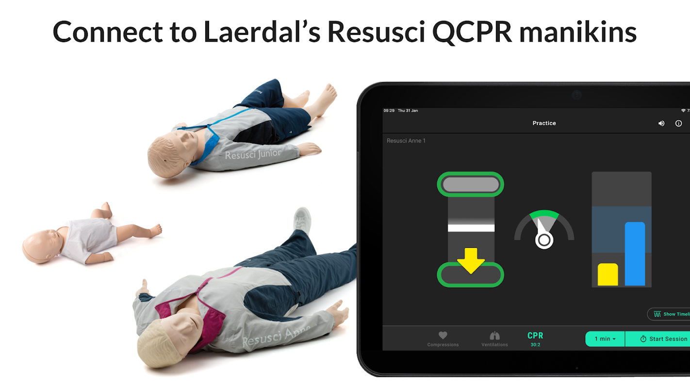 Connect to Laerdal Resusci manikins and get detailed feedback on CPR metrics.