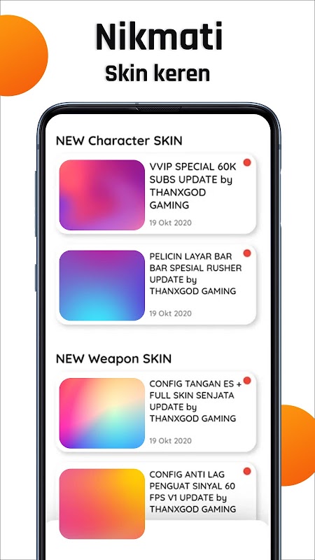 MOD SKIN akan ditambahkan setiap saat tanpa harus kalian update aplikasi ini di Google Play Store.