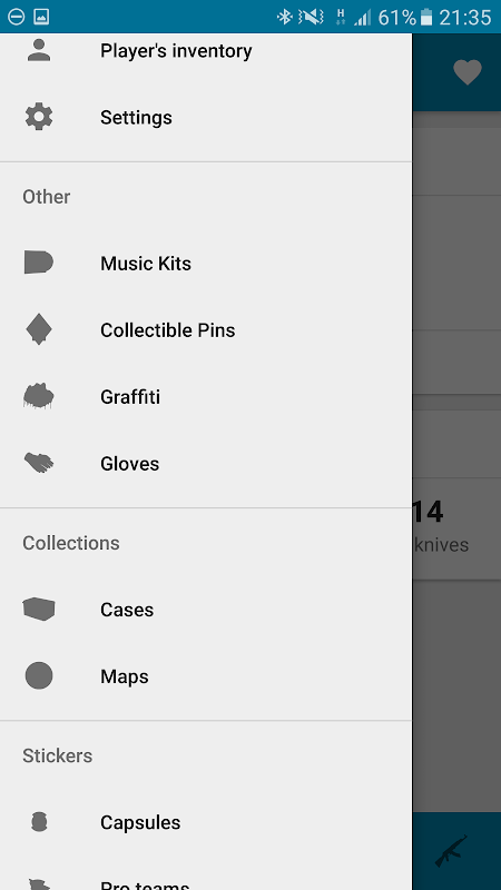 Full database of skins, stickers, knives, gloves, pins, graffiti and music kits.