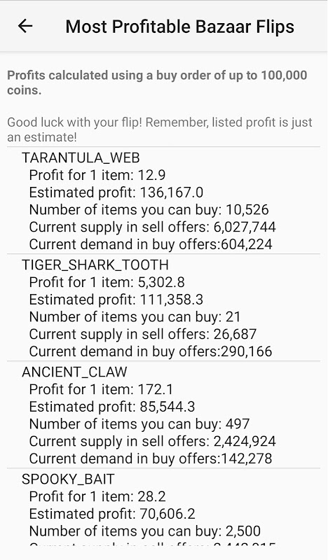 Get notified of bazaar price changes. Find the optimal minion.