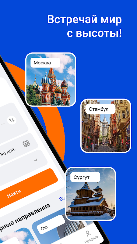 A simple and intuitive interface will help you quickly find flights, compare prices and issue a ticket - without queues and wasting time.