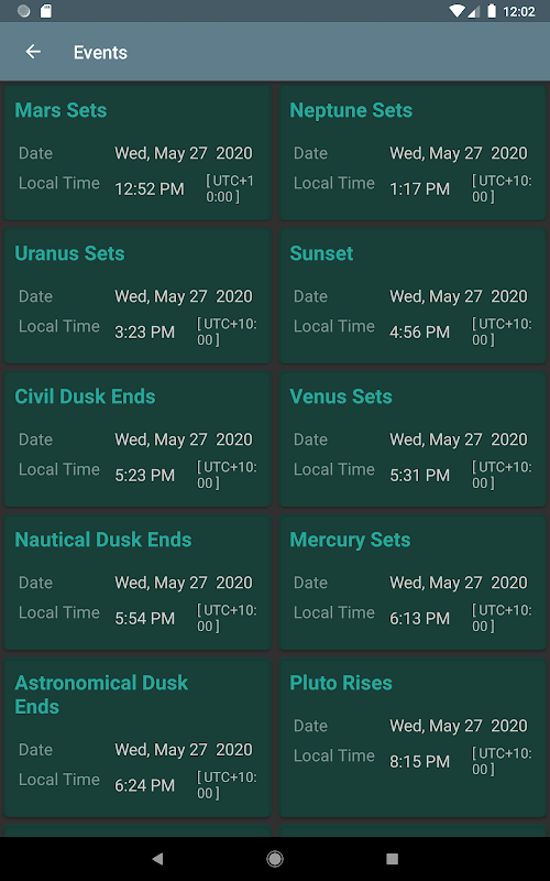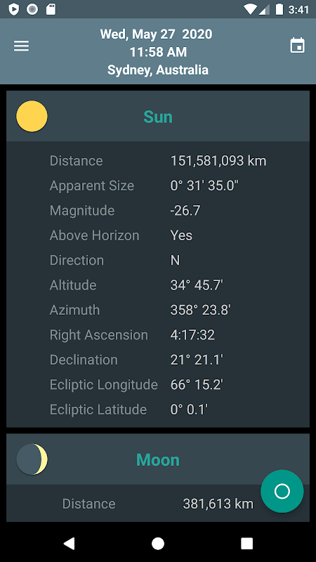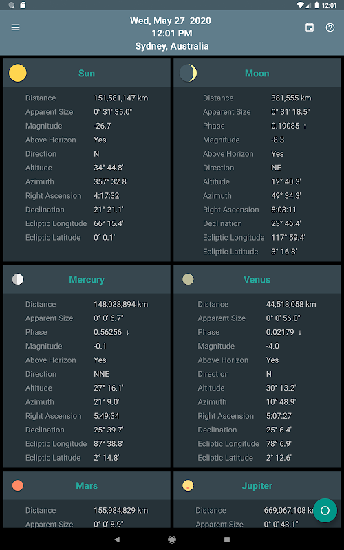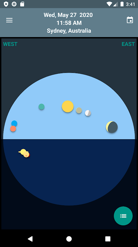 Skywheel is a simple map of the sky that shows at a glance the positions of the sun, moon and planets at your current location.