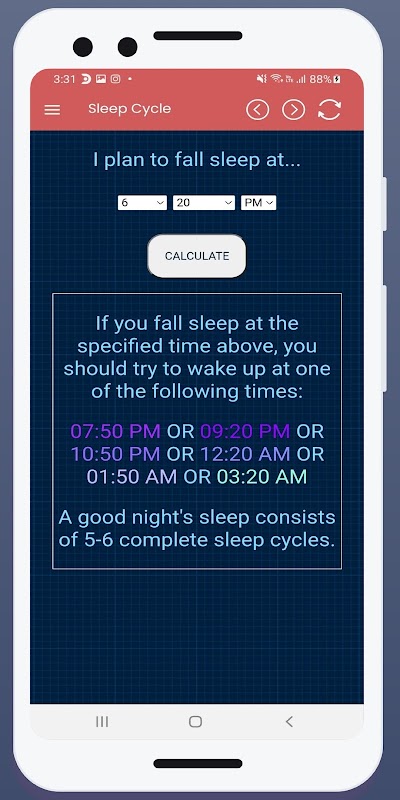This calculator aims to help you avoid this by counting backwards in sleep cycles of 90 minutes to help you wake up feeling refreshed.