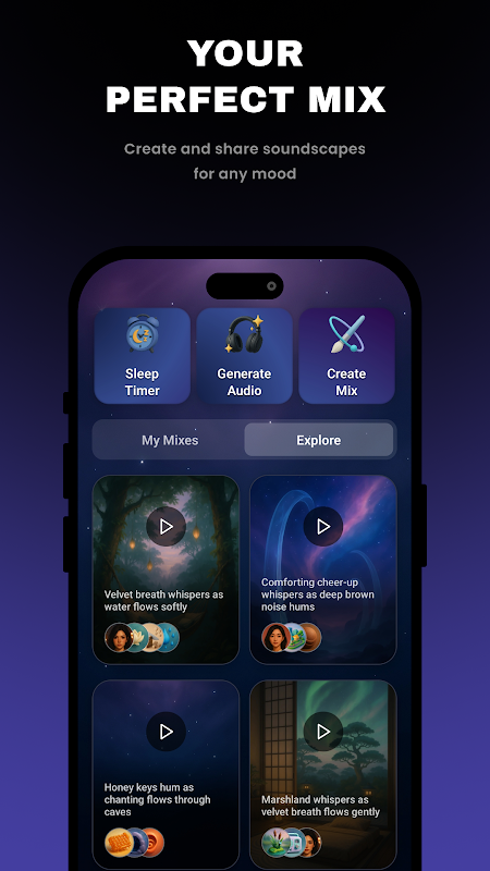 • Social Sharing & Community: Connect with fellow relaxation enthusiasts. Share your favorite sound mixes and 3D soundscapes on the new feed, discover what others are listening to, and get inspired by a global community dedicated to sleep, ASMR, and mindfulness.