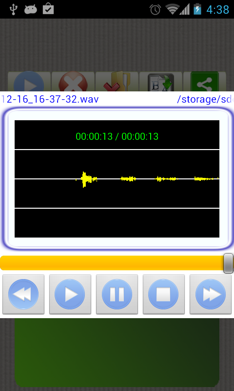 The key feature of the app is the ability to adjust the recording level sensitivity. When the sound is higher than the recording level, the sound will be recorded in high-quality WAV file format. Additionally, you can set an auto-stop timer and a delay timer. You can also drag to select where you want to start playing the recording.