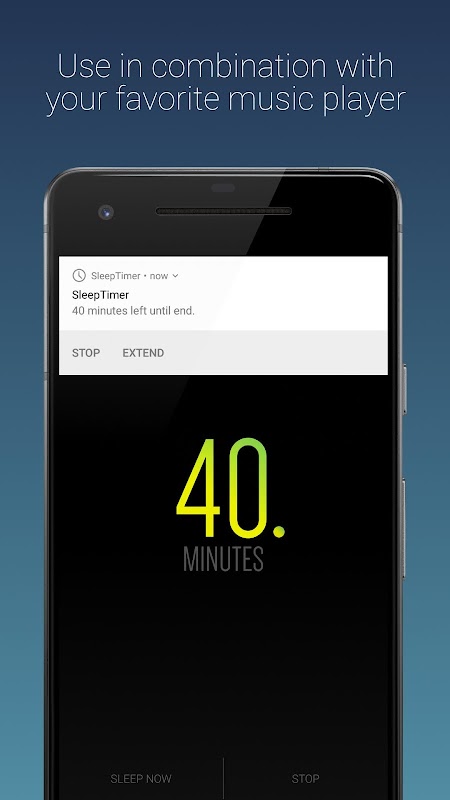 Sleep Timer lets you fall asleep to your favorite music. You simply start your music, and then set the countdown timer. At the end of the countdown, Sleep Timer softly fades your music out and stops it. Allowing you to get your precious sleep and stops your battery from draining.
