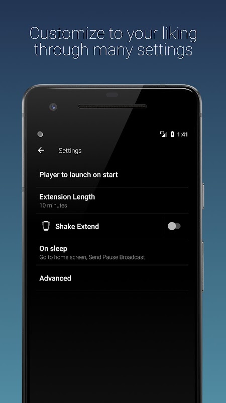 Sometimes falling asleep is not that easy. Our shake to extend allows you to shake the phone to extend the duration of the timer, without you having to unlock your phone.