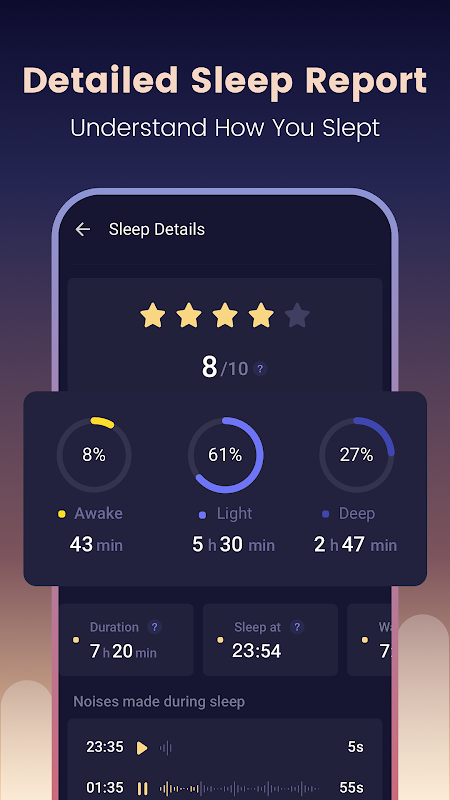 ✨ 3. Detailed and accurate sleep reports for better understanding of your sleep: deep sleep, light sleep, sleep noises and more;
