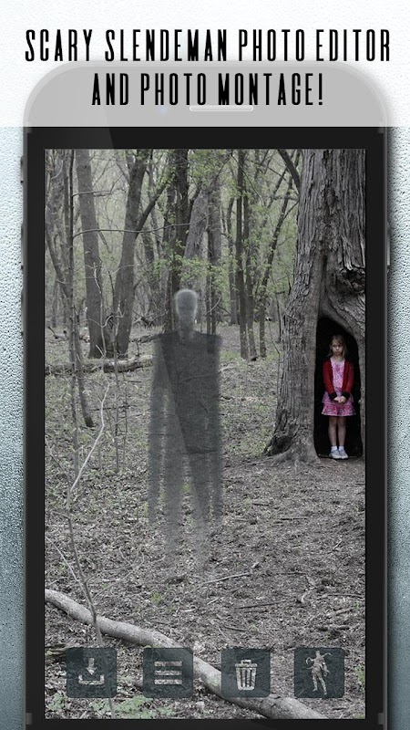 Choose one of the scariest stickers for your ghost in picture. Spot the ghost in photo and make scary montages with this eerie picture decorator. Slenderman Photo Editor - Ghost Camera is a horror photo maker with creepy stickers. If you love the slenderman origin story and want to become a part of it, this horror photo editor will create eerie ghost photos just for you. Watch out, the slenderman is coming! Download this entertaining monster camera editor with stickers to put on pictures and tell people to pay attention to your scary pics – you never know what hides in them!