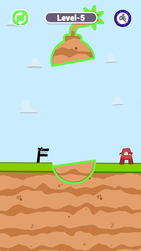 Cut the stones to complete the alphabet collection and don't neglect your comrades on your way to success. Cut the stones according to the hole below. Try not to overflow the stones you cut from the pit. Cut stones so you can move forward on the road.