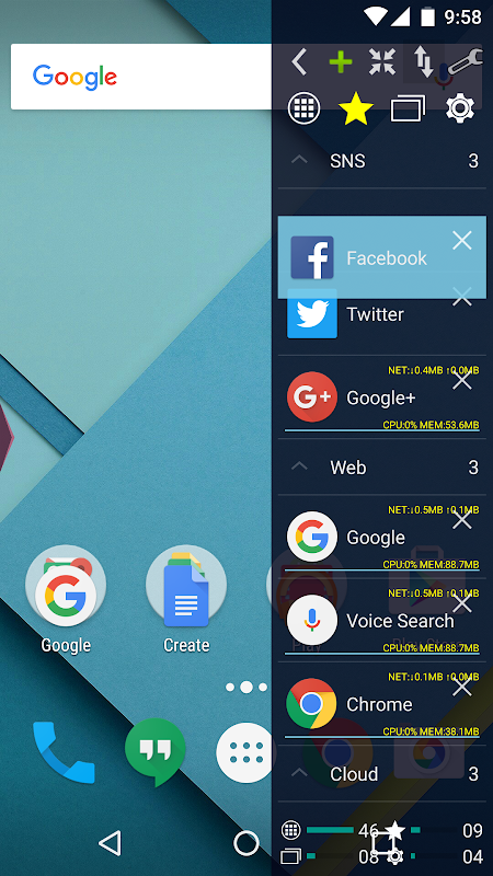 This app is a sub-launcher app that can start another app quickly without returning to the home screen. You can use this app without changing the home app.
