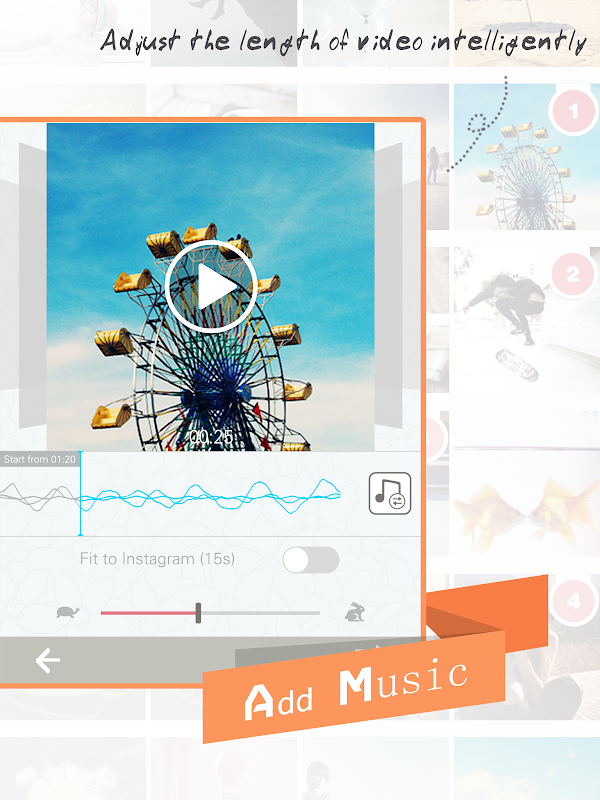 Slide Maker mixes your photos & music to be a short FANTASTIC video slide show. You can share them with your friends via Instagram, Facebook, Twitter, Vine, YouTube etc and get tons of like!
