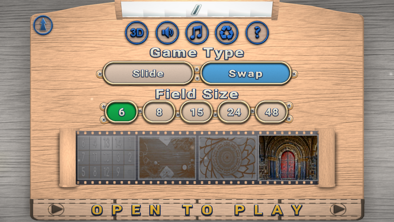 Slide Puzzle, Swap Puzzle, Picture Sliding, and variations include fifteens.