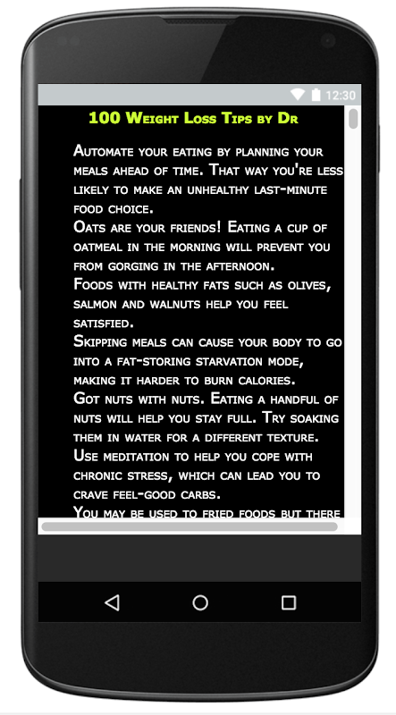 Find out how to slim down and look fit. When we look better we feel better. 100 Weight loss tips which really do work and which don't. This Application is designed for guaranteed weight loss tips that will set your weight straight, and help you adopt some really healthy, weight-friendly habits for life.