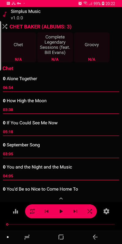 • Dynamic shuffle button: randomly plays the device/Artist songs;