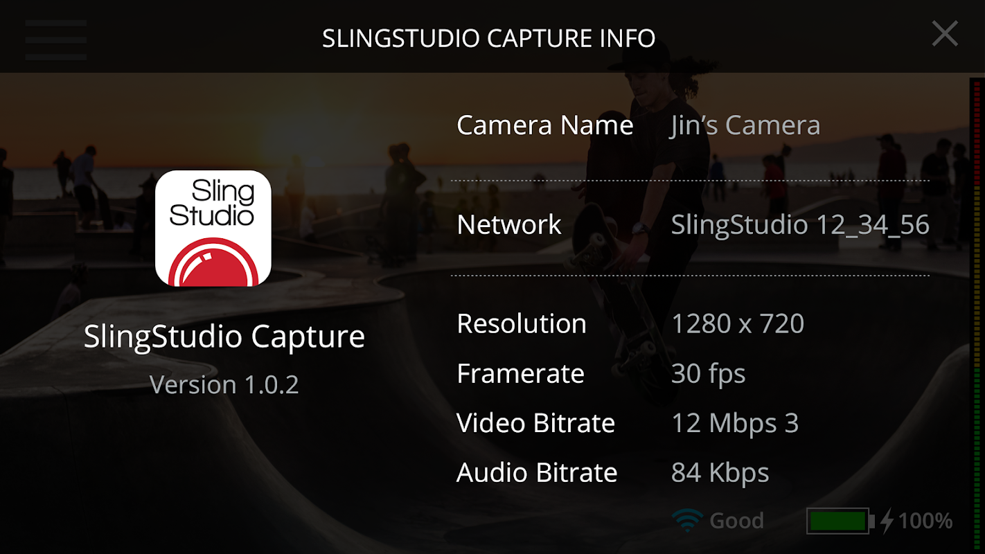 The Capture app wirelessly sends up to 1080p video from your Android phone’s camera to SlingStudio and supports: