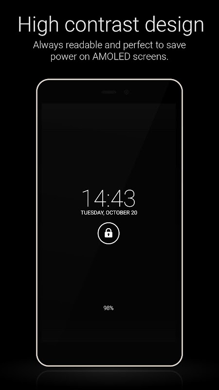 A minimal and elegant lockscreen with plenty of options. Perfect for keeping the battery drain low on Amoled displays.