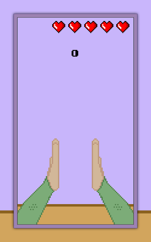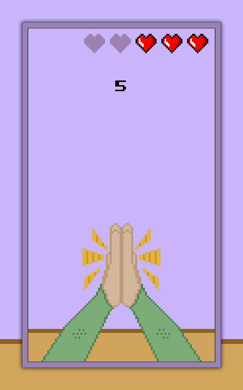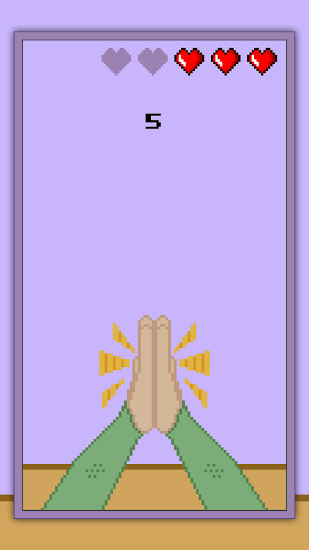 You will have 5 lives. Every time you tap the screen when the hand palms are not touching it will cost you a life.