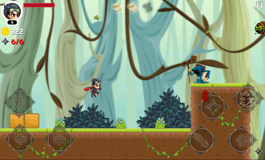 + Player with Ninja actions and abilities (Jump, Double Jump, Dodge, Throw Dart and more)