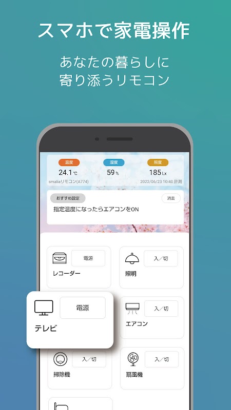 * To operate home appliances with this app, the device body of "smalia smart remote control" made by Ratoc Systems is required.