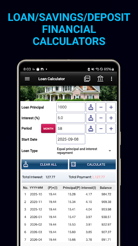 - Provides a detailed monthly repayment plan when you select the loan amount, interest, loan period, and loan type.