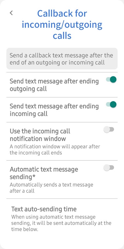 This app automatically sends pre-entered text messages after a phone call.