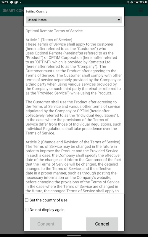 ・Set and approve the country of use in the Terms of Use.
