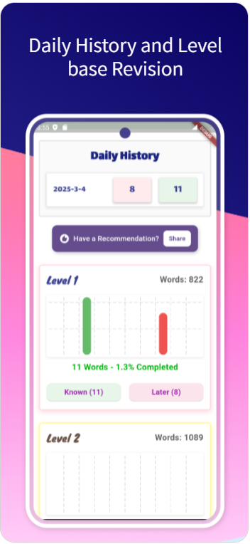 ✔ ‘Later’ Mode: Revisit words that need more practice