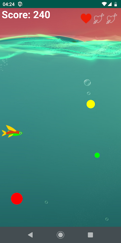 * Feed green and yellow balls to the fish to gain points.