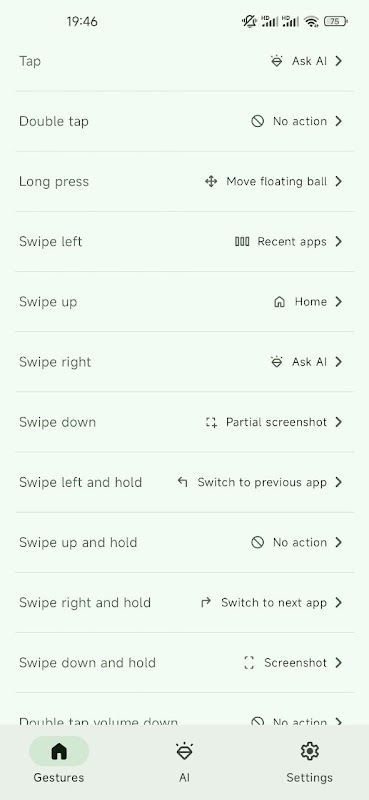 • Customizable gestures — Set actions for click, long press, double tap, or swipe gestures.