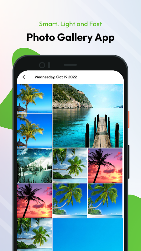 - Sort by Name, Sorting by Date, Size wise Sorting, Ascending/Descending Sorting photo grid.