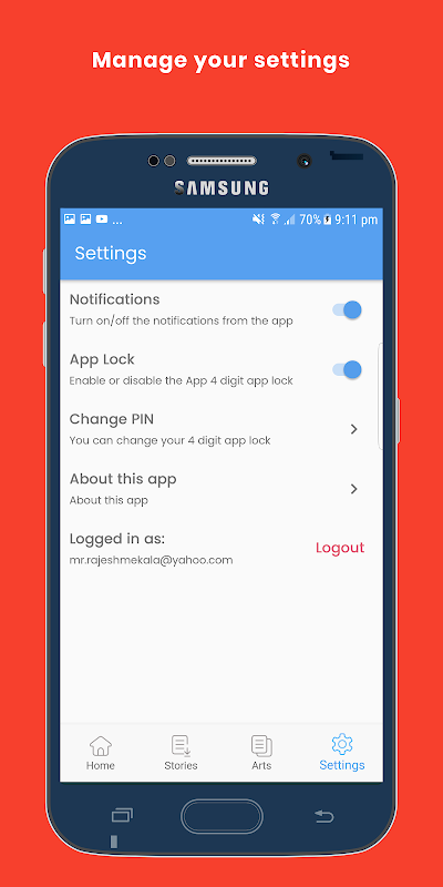 Set up a PIN lock and manage your notification settings with easy toggle.