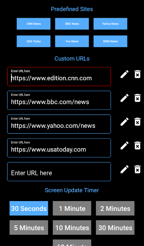 Perfect for kiosk style Smart displays - Choose upto 5 different webpages and they will rotate one