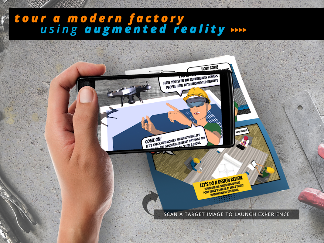 2. Scan pages of the Smart Manufacturing comic book to launch the AR experience