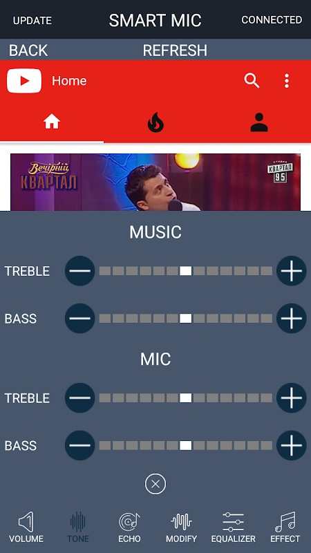 Use Bluetooth connection to control MP3 player and wireless microphone.
