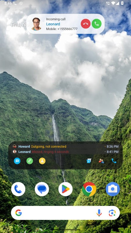 - a widget on the home screen with unread SMS, missed calls or contacts that we did not call (backlog calls) plus buttons for a new message, phone dialer or contact overview